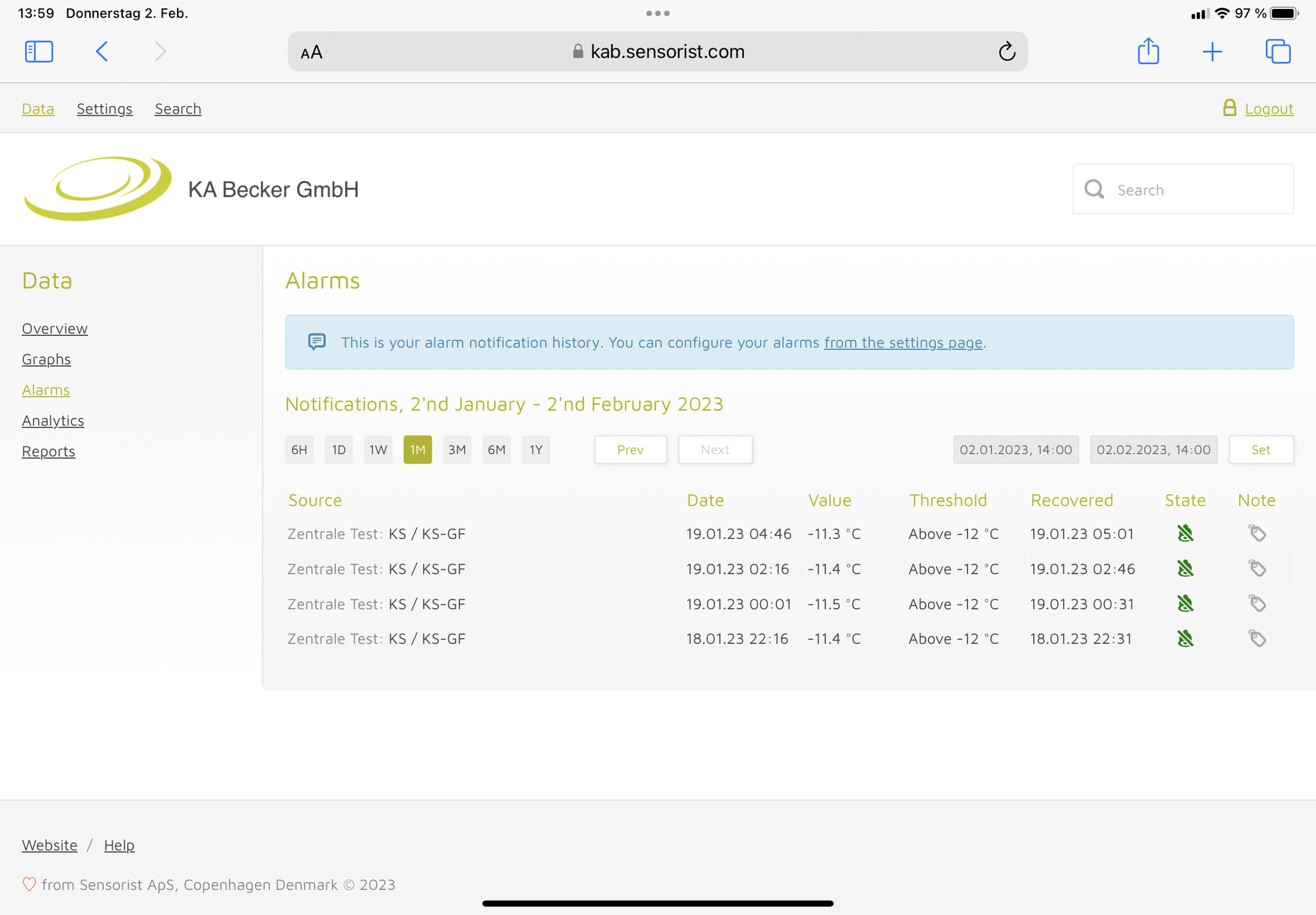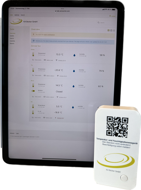 - Transportlösung: Aufzeichnung auch entfernt von der Basis. Übertragung der Daten automatisch bei Rückkehr des Sensors.